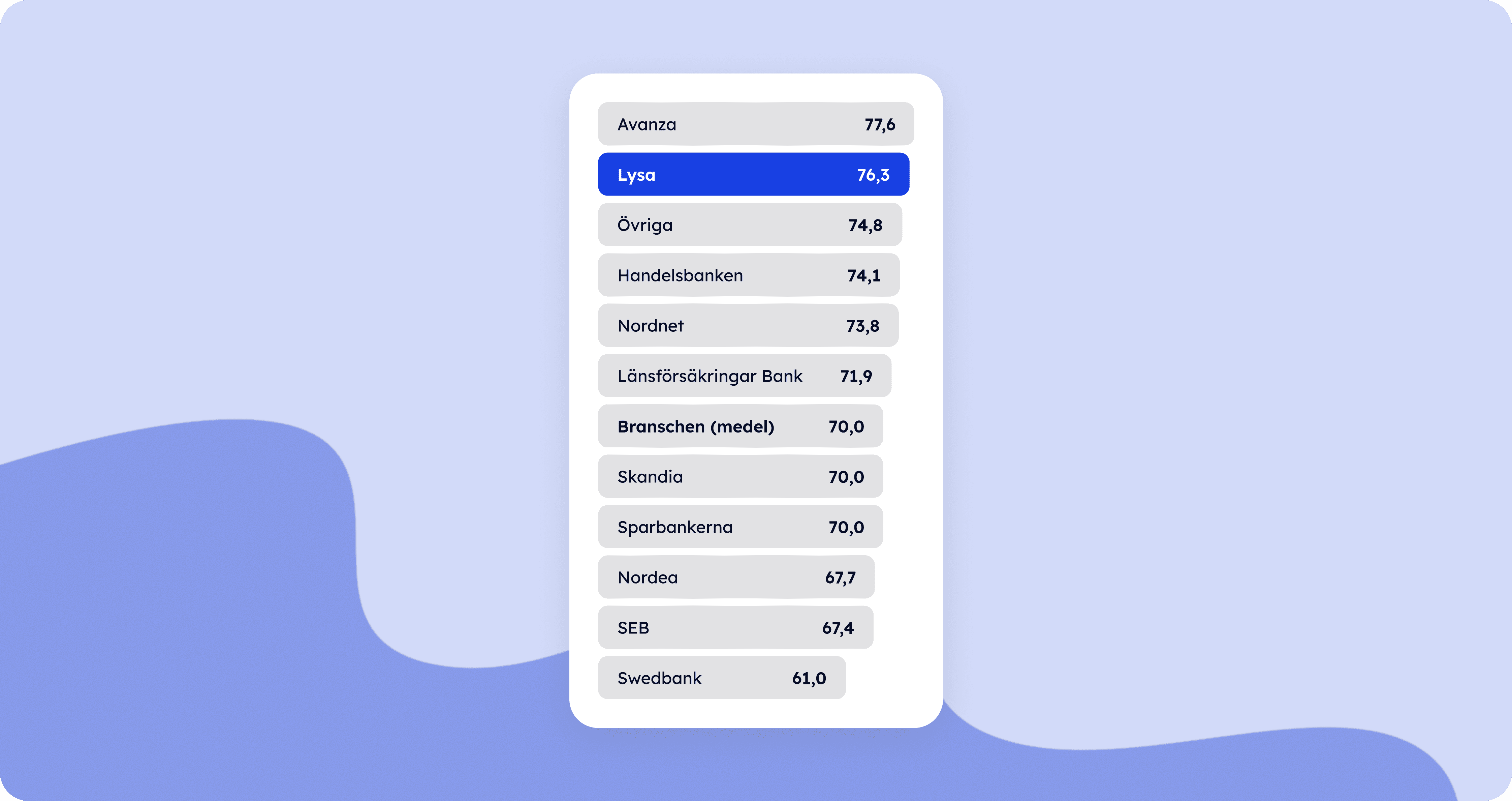 Det ska vara lätt att spara rätt. Det har varit vår ledstjärna sedan dag ett. När Lysa nu, för första gången, tar plats på Svenskt Kvalitetsindex (SKI) lista över branschens största aktörer, så gör vi det genom att hamna på en klar andraplats. Det är ett fint kvitto på att vi är på rätt väg. Tillsammans.